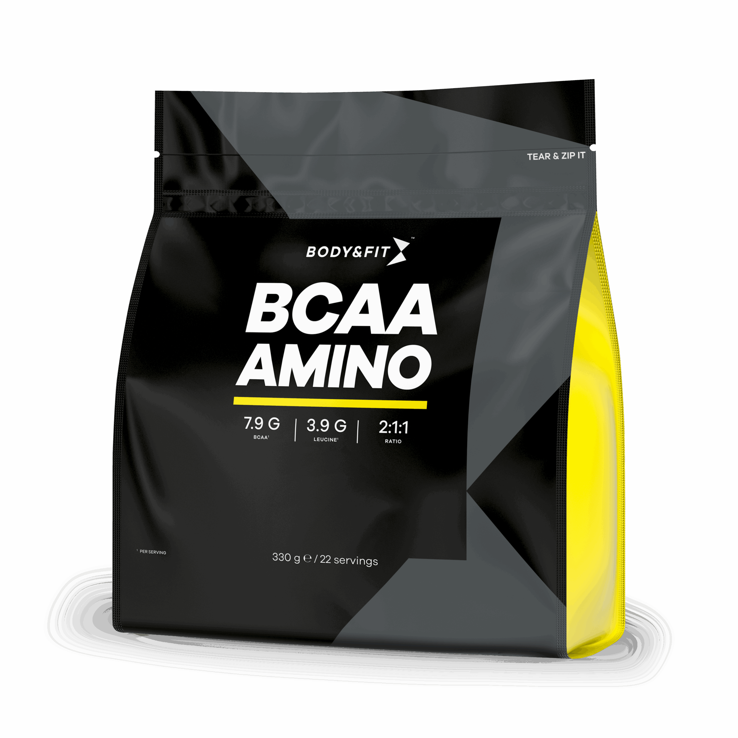 BCAA Amino bevat 8 gram BCAA 2:1:1 en 5 gram koolhydraten per dosering. 22 doseringen per pot. BCAA's in de ideale 2:1:1 BCAA verhouding BCAA's zijn de meest populaire aminozuren onder sporters. Dat is niet voor niets! 1/3 van je spiereiwit bestaat uit BCAA's. Deze kun je niet zelf aanmaken. Ons hoogwaardig BCAA 2:1:1 poeder wordt middels een natuurlijk fermentatieproces onttrokken uit plantaardige bronnen. Zo krijg je de zuiverste BCAA's. Wil je optimaal resultaat? Drink een serving BCAA Amino rustig op tijdens of direct na een zware training. Body & FitĀ® BCAA Amino is direct oplosbaar in koud water.Direct klaar voor opname BCAA's zijn de meest populaire aminozuren onder sporters. BCAA's zijn direct klaar voor opname tijdens een zware training. Ze worden veel gebruikt door zowel kracht- als duursporters. Gebruik BCAA zowel vlak voor, tijdens of na de training.Hoge dosering BCAA Amino van Body & Fit bevat een hoge dosering BCAA van maar liefst 8 gram. In de ideale 2:1:1 verhouding.