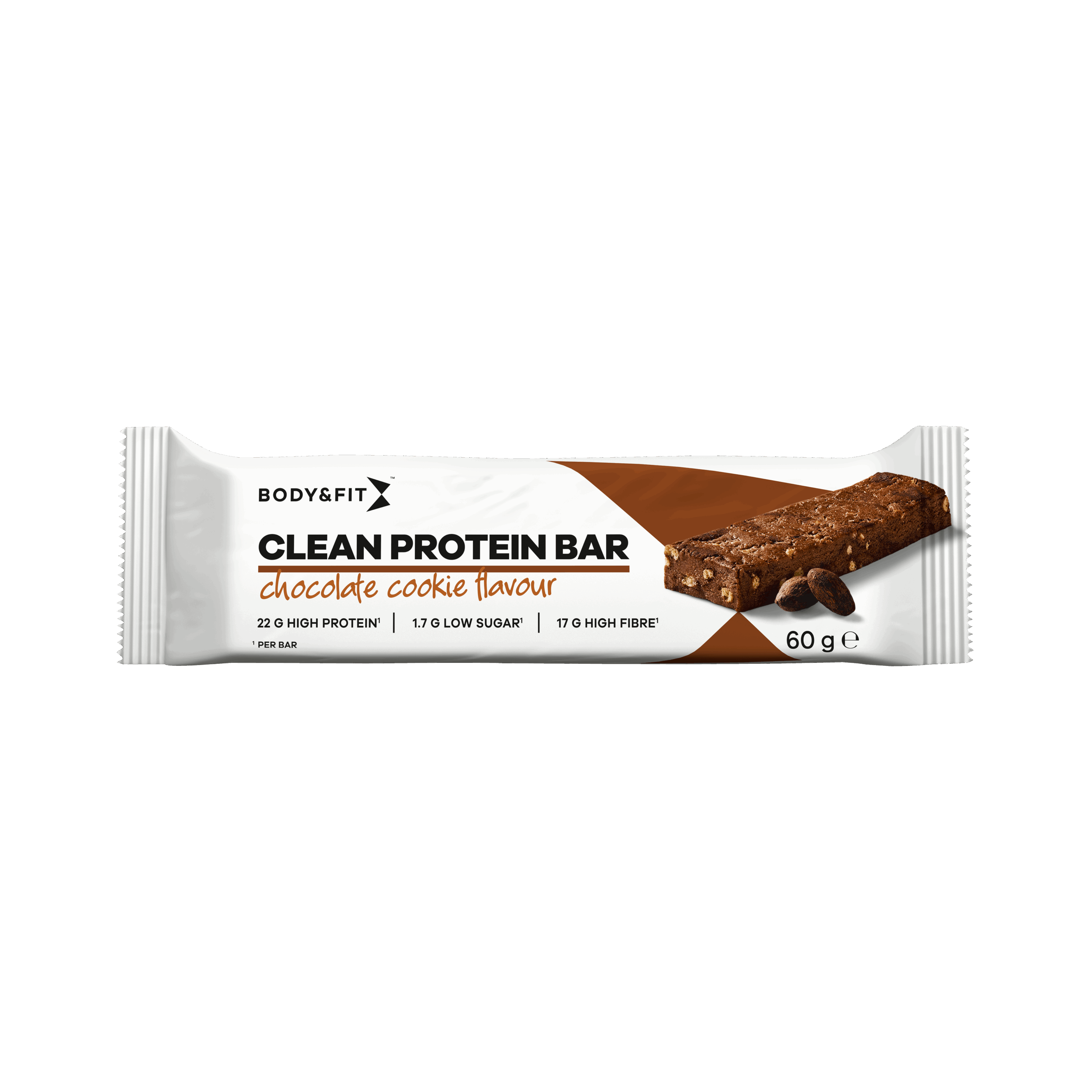 Productomschrijving Op zoek naar een eiwitreep met minder koolhydraten* en zonder toegevoegde suikers**? De Clean Protein Bar van Body&Fit heeft alles wat je zoekt. Geen coating, geen onnodige toevoegingen, maar wel boordevol smaak. Clean Protein Bar: wat is het? De Body&Fit Clean Protein Bar is een favoriet onder sporters en iedereen met een actieve leefstijl. Een reep bevat 21 gram hoogwaardig eiwit. Het product bevat geen toegevoegde suikers** en is gezoet met onder andere stevia-extract – een natuurlijke zoetstof zonder calorieën. Ideaal voor als je op je voeding wilt letten, zonder in te leveren op smaak! Wanneer kun je Clean Protein Bar nemen? De Clean Protein Bar is een heerlijk en makkelijk tussendoortje. Perfect om te gebruiken na het sporten, want eiwitten ondersteunen snel herstel van je spieren na je training. Ook ideaal om mee te nemen naar de sportschool of voor onderweg. Onze Clean Protein Bar is de ideale keuze voor iedereen die extra eiwitten wil binnenkrijgen zonder
