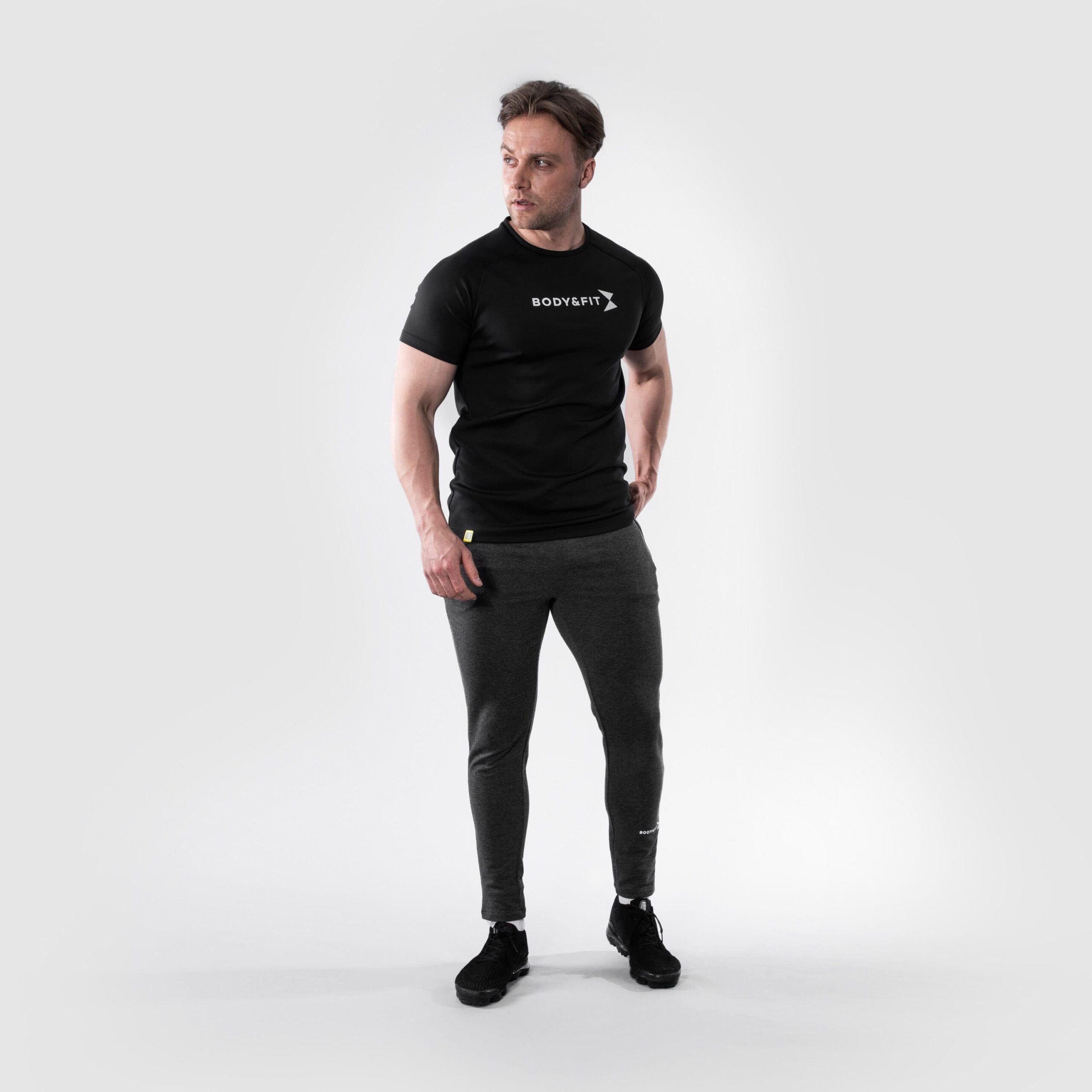 Hoogwaardig Tech performance-T-shirt met korte mouwen voor heren Iedereen die zijn training serieus neemt haalt een van deze hoogwaardige T-shirts in huis. Het Body&Fit Men’s Tech Short Sleeve T-Shirt is gemaakt van een blend van katoen, polyester en elastaan, die vocht afvoert van het lichaam, zodat je koel en droog blijft tijdens work outs. Het 4-way stretchmateriaal is beschikbaar in 5 verschillende maten (small, medium, large, XL en XXL), in de kleuren zwart, wit, geel en grijs, en ondersteunt je mobiliteit en beweging. Het T-shirt heeft ook een 1/4 rits-halsstructuur en verborgen ritszak die zorgt dat al je persoonlijke spulletjes veilig kunnen worden opgeborgen.  Daarnaast zorgen de reflecterende printdetails op het performance T-shirt met korte mouwen dat je goed zichtbaar bent als je er ’s nachts op uit gaat om te trainen! Wasinstructies * Binnenstebuiten wassen * Koud wasprogramma * Niet in de droger * Niet strijken