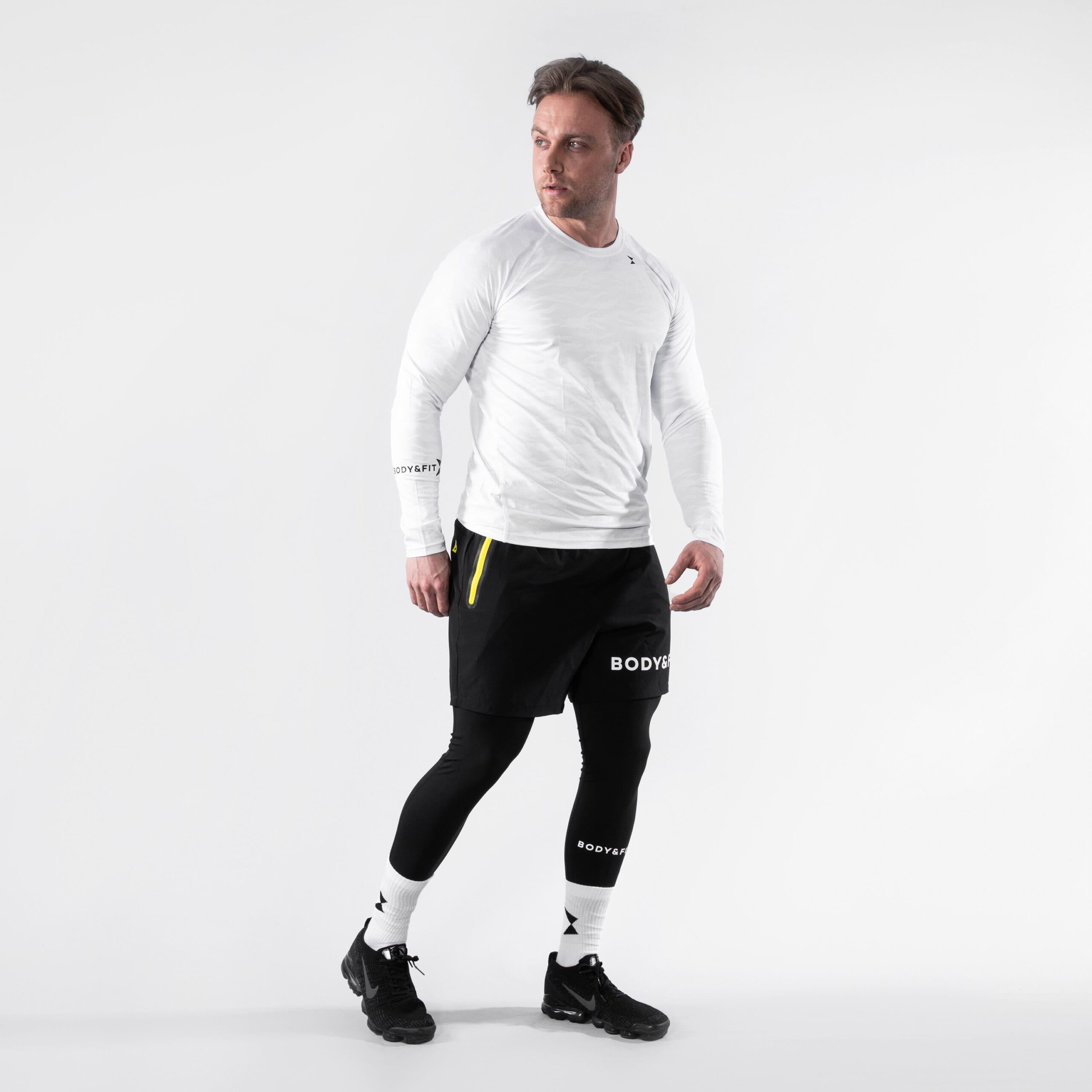 Hoogwaardig performance-T-shirt met lange mouwen voor heren Ga voor geweldige prestaties met ons nieuwe Men’s Performance Long Sleeve T-shirt. Dit T-shirt is verkrijgbaar in 5 verschillende maten (small, medium, large, XL en XXL) en in de kleuren zwart, antraciet, geel en wit. De ademende stof zorgt dat je koel blijft tijdens je training, terwijl het camouflagepatroon van mesh zorgt voor betere ventilatie. De lange mouwen maken het ideaal voor trainen in de buitenlucht, de stof is vochtafvoerend zodat je koel en droog blijft en de geurcontrole zorgt ervoor dat je net zo goed ruikt als je er uitziet. Wasinstructies * Binnenstebuiten wassen * Koud wasprogramma * Niet in de droger * Niet strijken