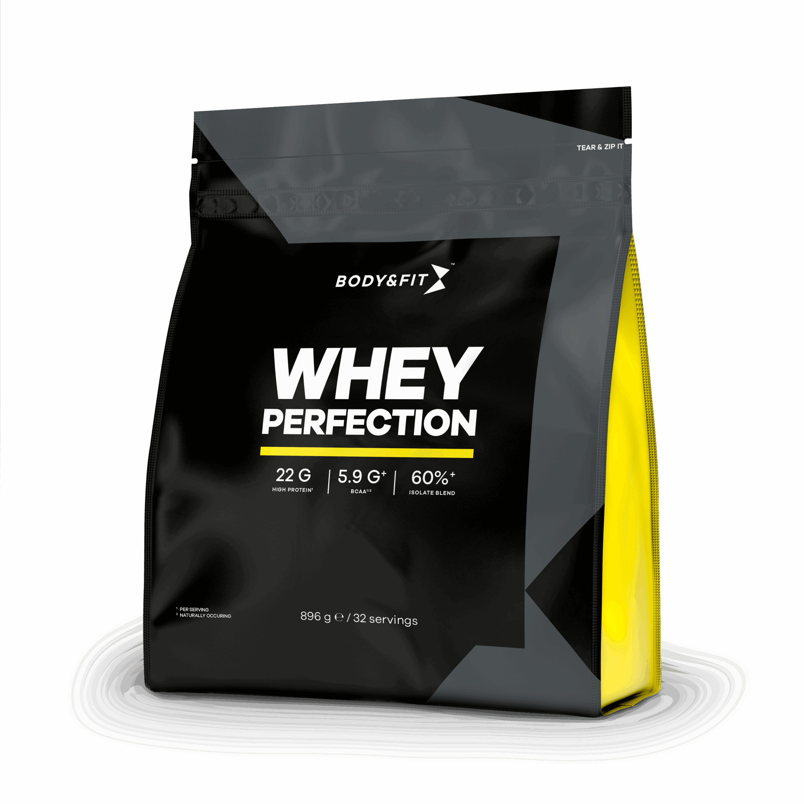 Dit product is uitgesloten van kortingen en kortingscodes tenzij anders vermeld Body&Fit Whey Perfection – Body&Fit’s #1 bestseller De favoriet onder sporters: Whey Perfection! Ondersteun je spiergroei met tot wel  23 gram pure en hoogwaardige eiwitten per shake. Whey Perfection: wat is het? Whey Perfection is de perfecte eiwitshake voor sporters. Met ongeveer 100 calorieën per portie, laag in suikers, krijg je alle voordelen zonder onnodige toevoegingen. De shake bevat een unieke combinatie van drie hoogwaardige bronnen van wei-eiwit: isolaat, concentraat en hydrolysaat. Meer dan 50% daarvan is wei-eiwit isolaat, een geconcentreerde vorm met een eiwitgehalte van 85%. Wanneer gebruik je Whey Perfection? Het beste moment om Whey Perfection te nemen? Direct na je workout. Eiwitten helpen je spieren te herstellen na je training. Maar je kunt het ook prima gebruiken als snack of verspreid over de dag. Hoe maak je de perfecte shake? Voeg het poeder toe, even schudden, en klaar is je